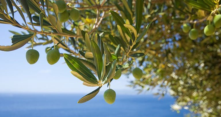 Este árbol perenne se caracteriza por sus hojas lanceoladas de color verde plateado y su tronco retorcido y rugoso. Los olivos son famosos por producir las apreciadas aceitunas, que se utilizan para obtener aceite de oliva virgen extra, uno de los pilares de la dieta mediterránea.